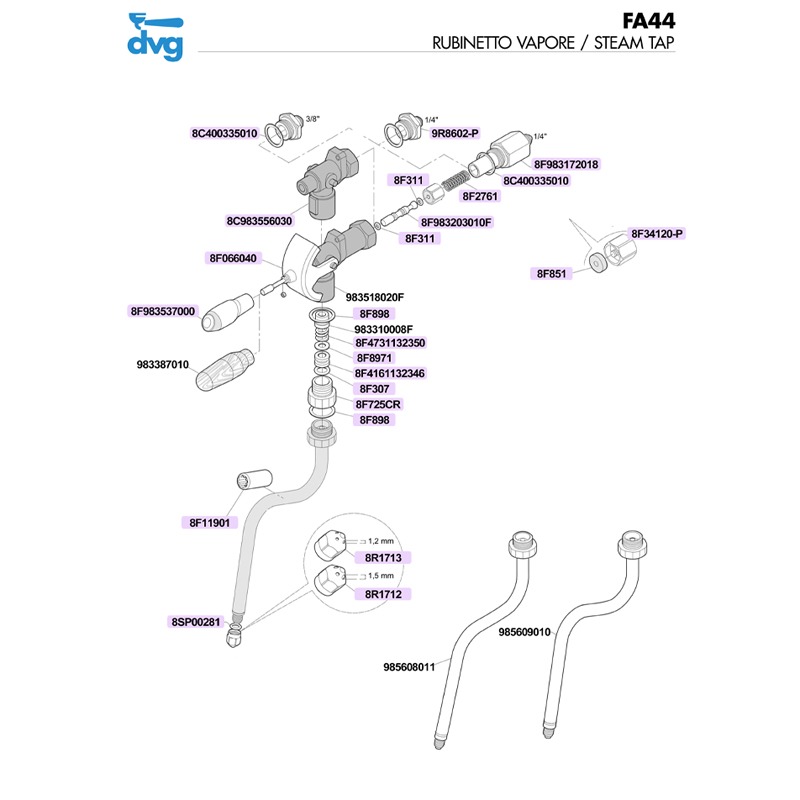 Suitable to Faema (mod. E71, E71E), compatible with code 983219000F. Suitable for all the D.12mm steam pipes with 1/8"GAS fitting. Fits also all the D.10mm steam pipes using the niples cod. 9V2951-554. PEEK is a semicrystalline thermoplastic polymer with excellent mechanical and chemical resistance properties that are retained to high temperatures.